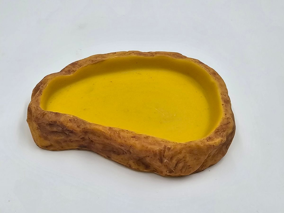 Resin feed dishes are durable and assist with replicating a natural environment for your reptile.  Suitable for dry and liquid use. Safe and easy to clean. Small 13 x 10 x 2cm.