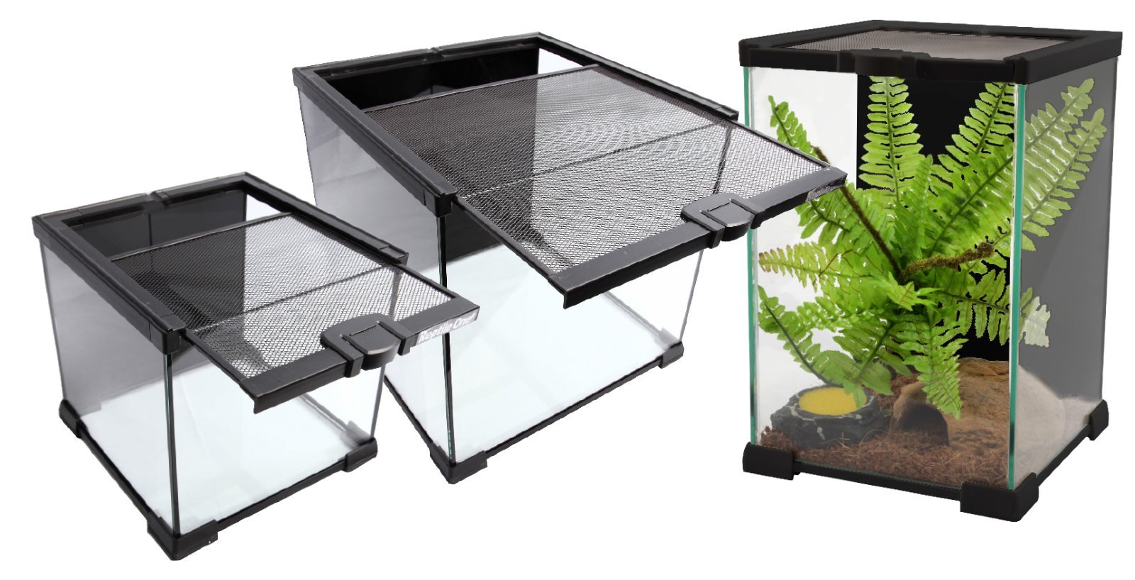 The Mini-T2 features raised feet to allow placement of a heat mat and enable the enclosures to be stacked. The superfine steel mesh lid provides added security and ventilation.