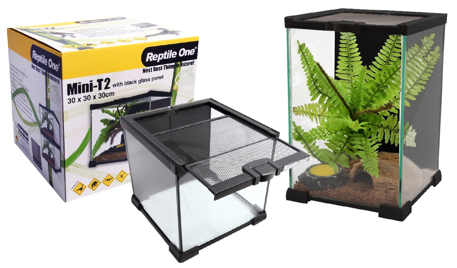 The Reptile One ‘Mini-T2’ is the perfect versatile, glass starter terrarium for small geckos, hatchling snakes, skinks, scorpions, spiders or stick insects.